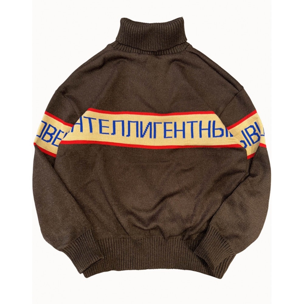 Джемпер БИЧ – знаковая модель бренда, четко отражающая наш код. Он изготовлен из качественной плотной пряжи, что создает довольно свободный и непринужденный силуэт. Джемпер имеет высокий свободный ворот и длинные рукава с плотными манжетами, которые можно подвернуть. Дизайн джемпера весьма минималистичен, но контрастный принт с надписью «Бывший Интеллигентный Человек» моментально выделяет его из тысячи других оверсайз-свитеров. А еще надпись символизирует внутренние изменения – переход от интеллигентного образа к более непокорному. Благодаря этому, вещь становится визуальным откровением и стимулирует задуматься о наших внутренних противоречиях. Состав – 60% ПАН, 30% хлопок, 10% полиэфир Страна-производитель – Россия Цвет – Коричневый Модель – Оверсайз Размер – S на рост до 175 и размер 42-46, М на рост от 175 и размер 48-52